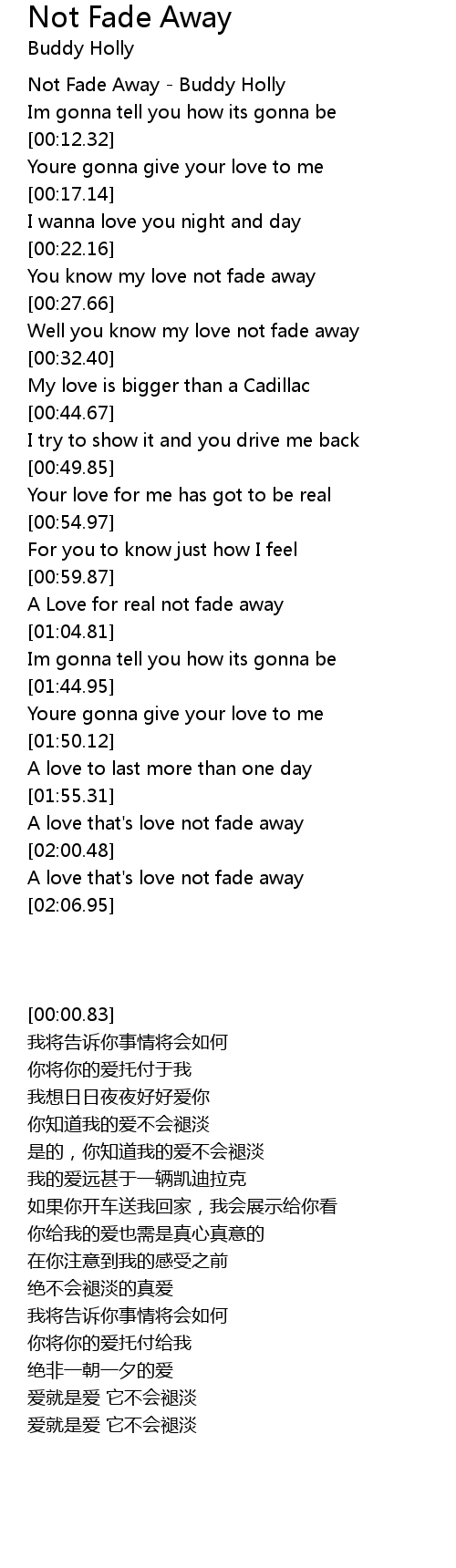 Well you know my love not fade away |