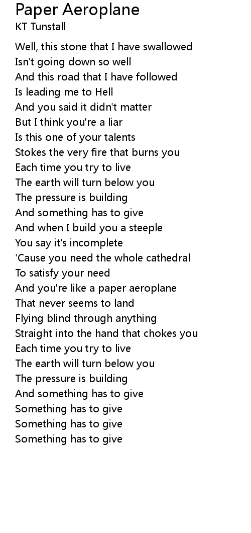 And you're like a paper aeroplane |