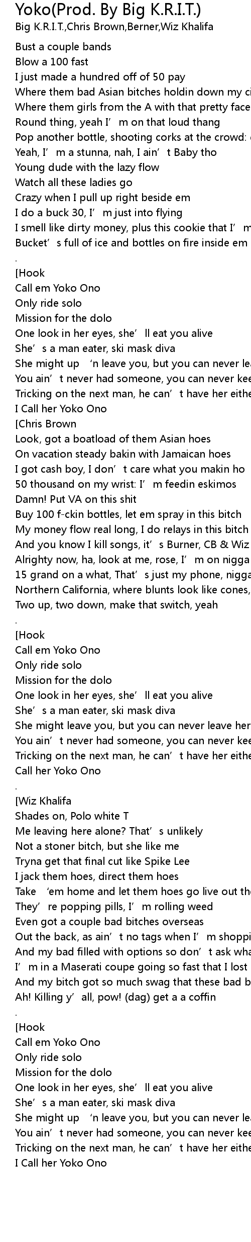 | Song | Yoko(Prod. By Big K.R.I.T.) |