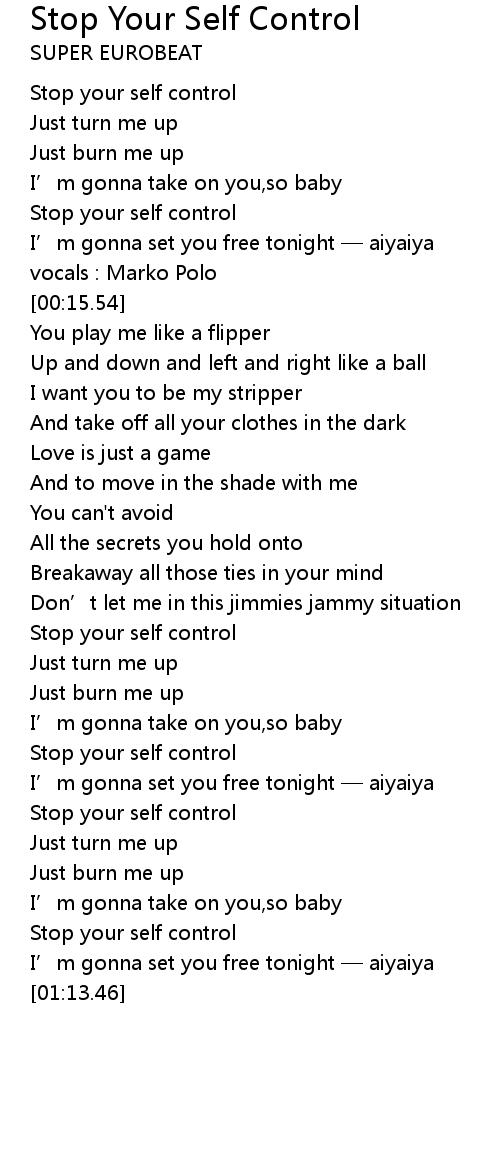 | [00:08.14] | I' m gonna set you free tonight aiyaiya |
