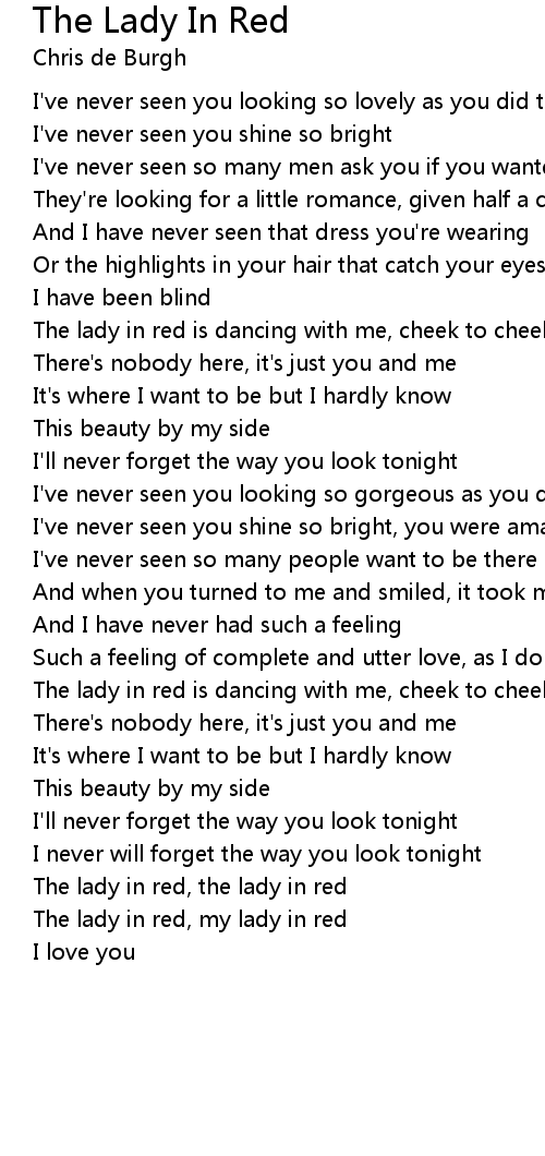 The lady in red, my lady in red |