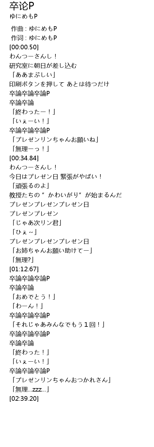 | [02:20.01] | 卒論卒論卒論P |