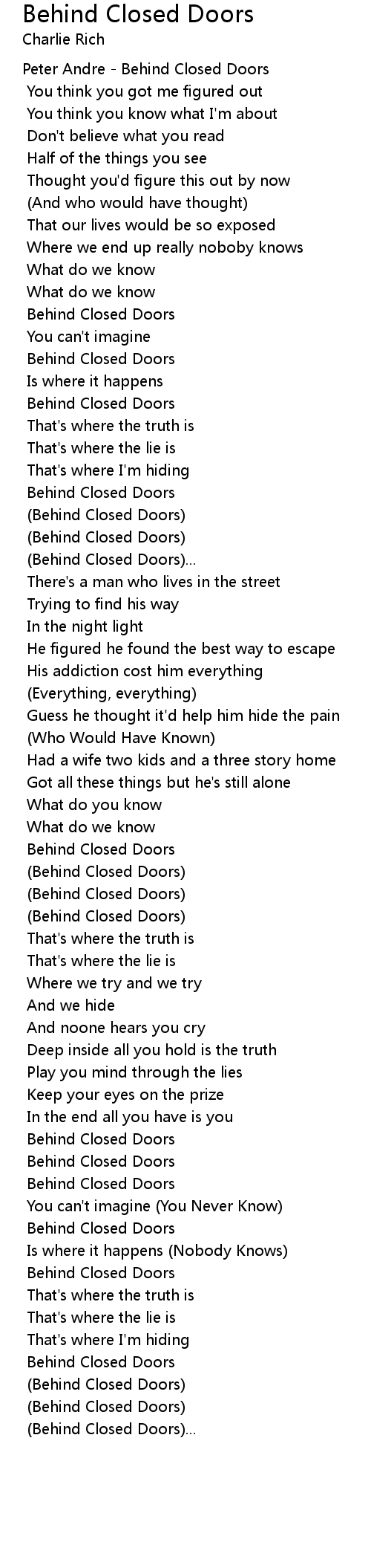 (Behind Closed Doors) |