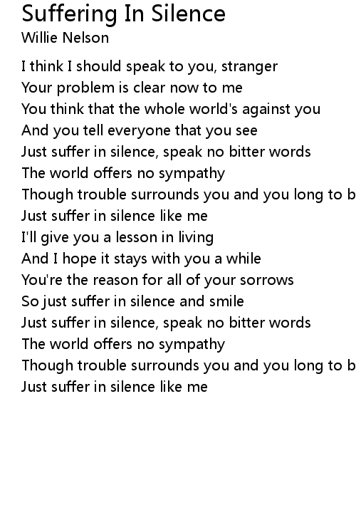 Just suffer in silence, speak no bitter words |