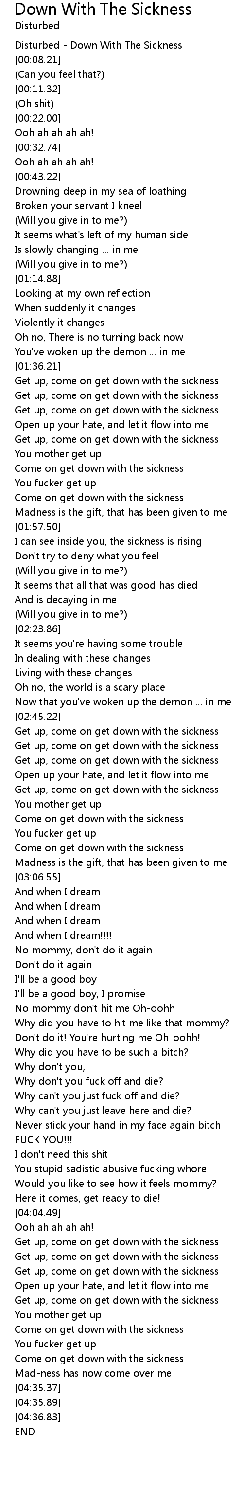 Come on get down with the sickness |