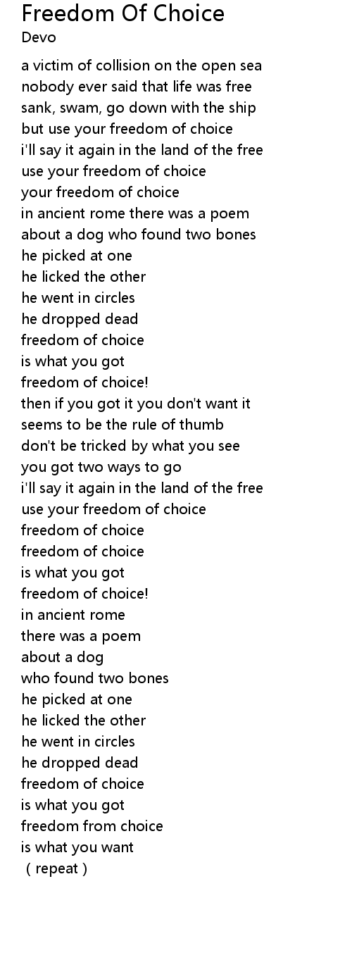 | Song | Freedom Of Choice |