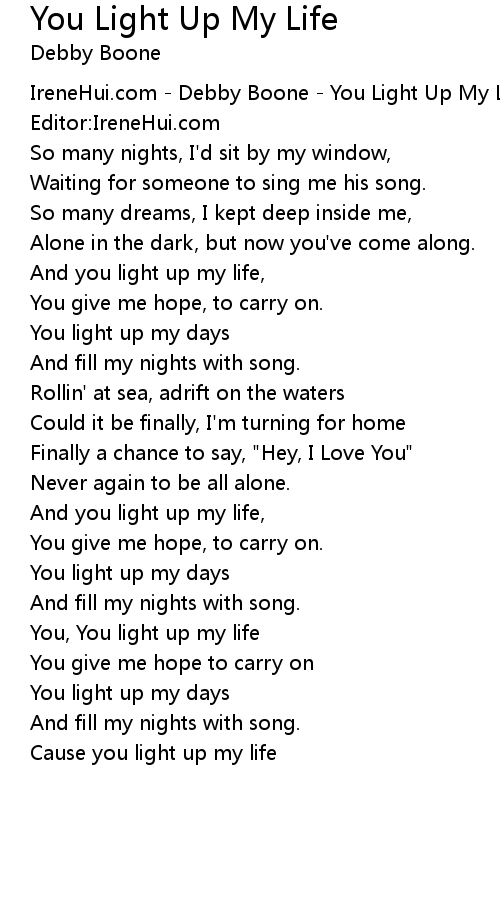 IreneHui.com - Debby Boone - You Light Up My Life |
