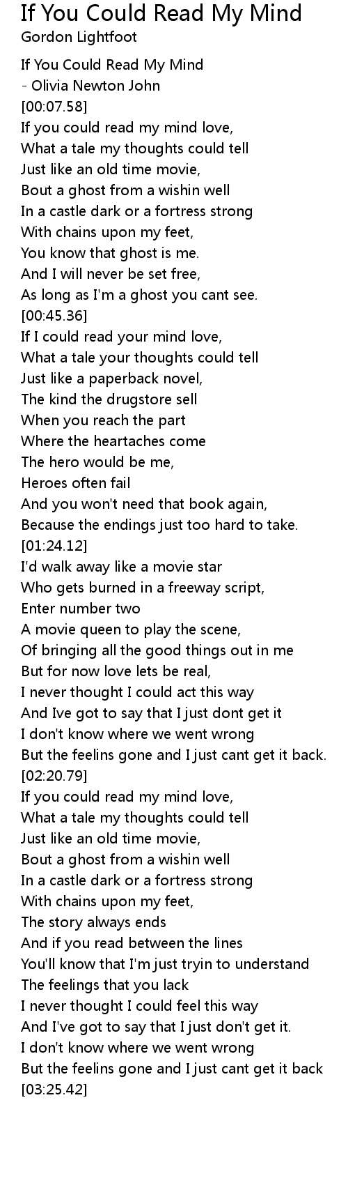 If You Could Read My Mind |