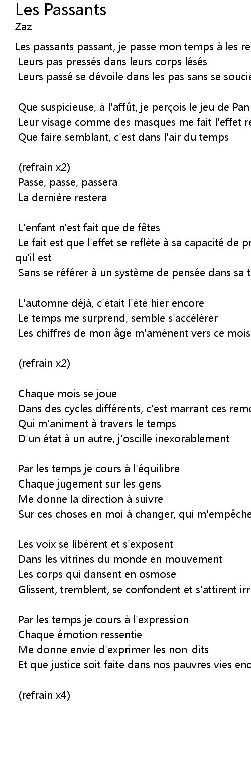 | Song | Les Passants |
