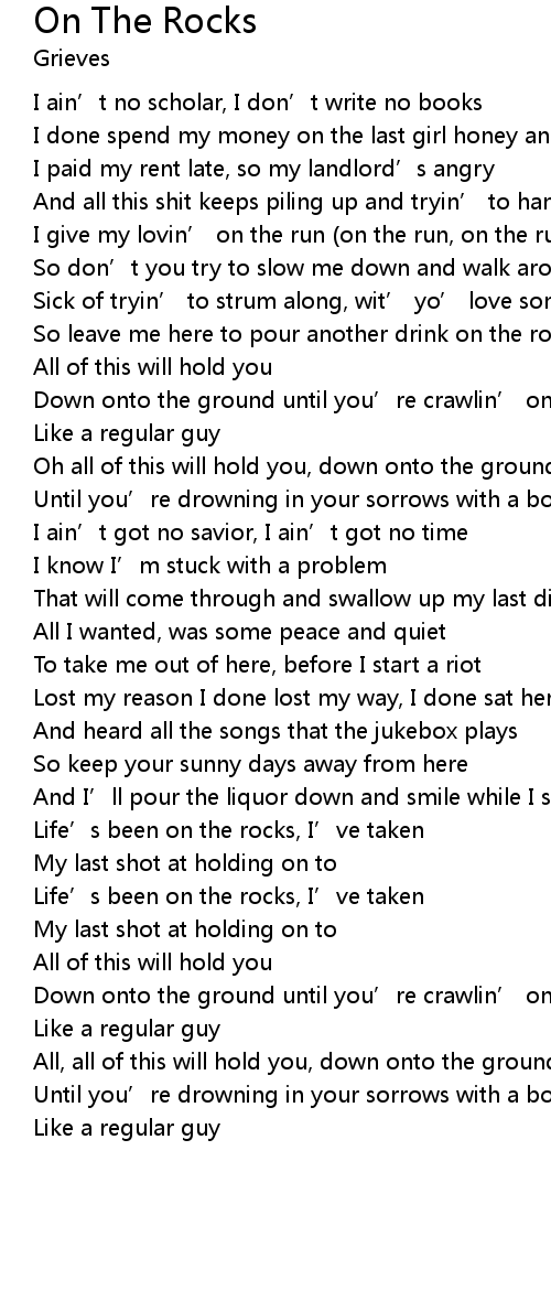 | [01:07.473] | Down onto the ground until you' re crawlin' on the gravel |