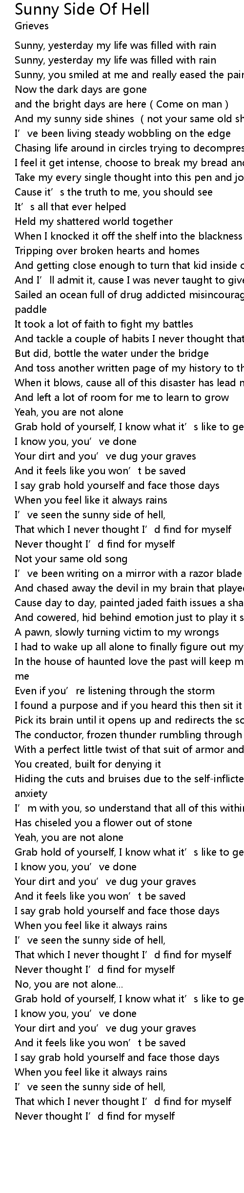 | [00:24.847] | And my sunny side shines not your same old shit |