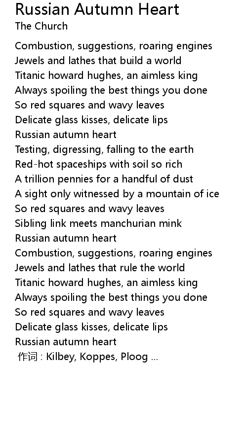 | [00:00.00] | 作词 : Kilbey, Koppes, Ploog ... |