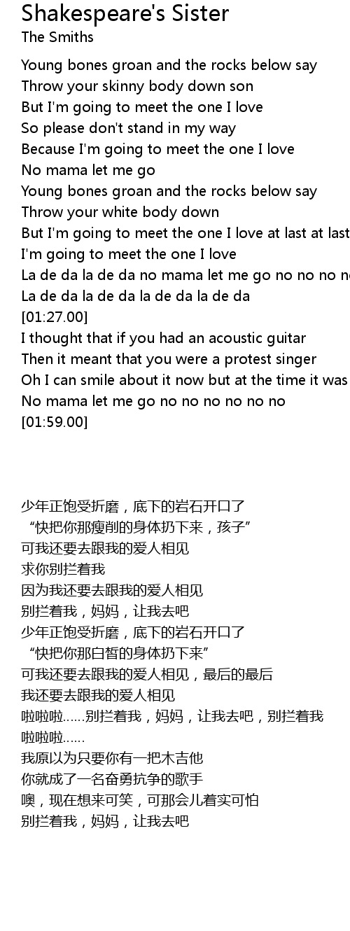 La de da la de da no mama let me go no no no no no no |