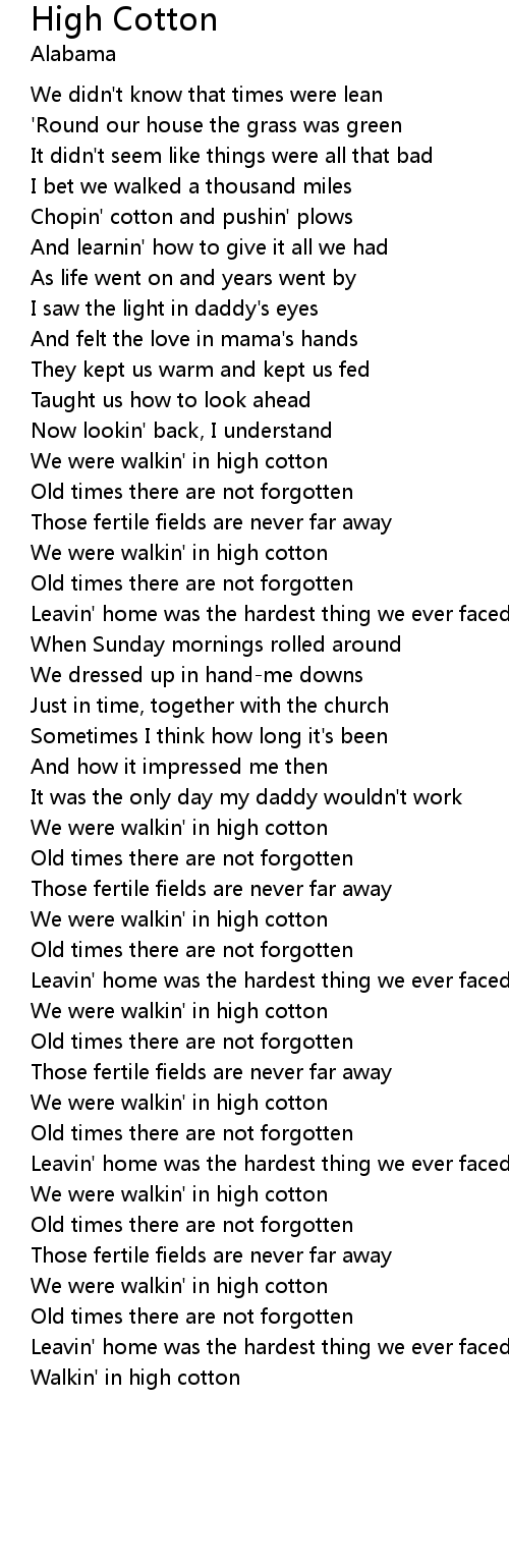 We were walkin' in high cotton |