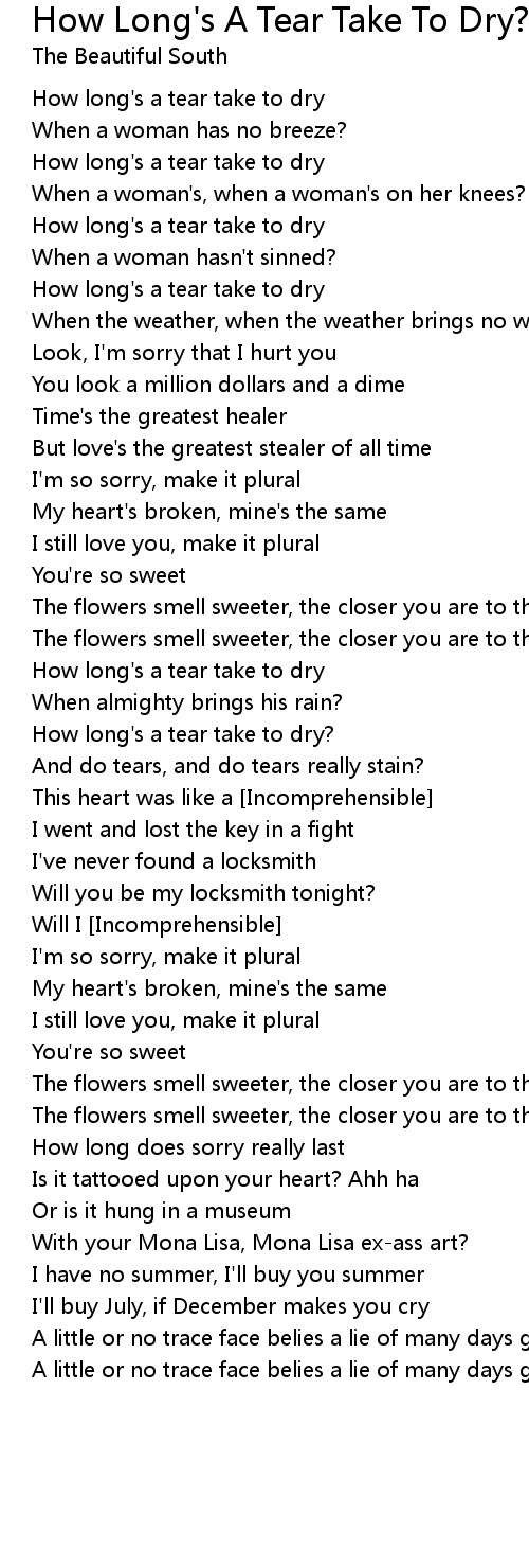 How long's a tear take to dry? |