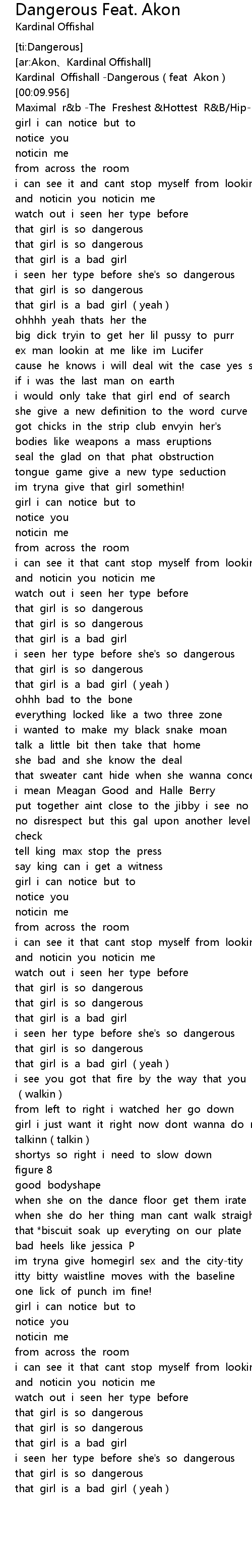 | [00:09.318] | Kardinal Offishall Dangerous feat Akon |