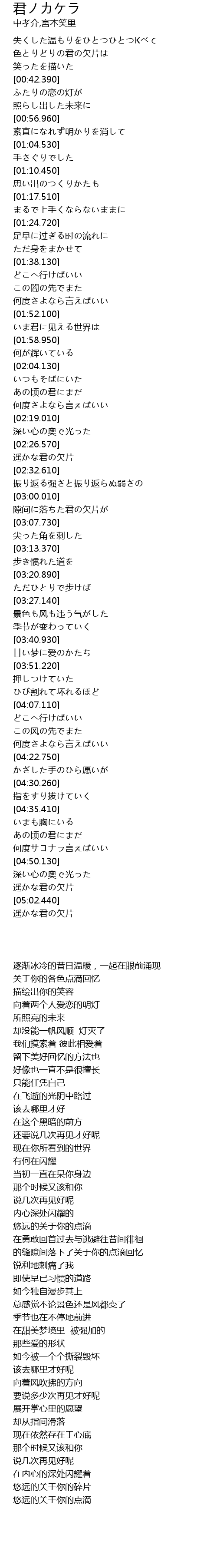 | [00:18.310] | 失くした温もりをひとつひとつKべて |