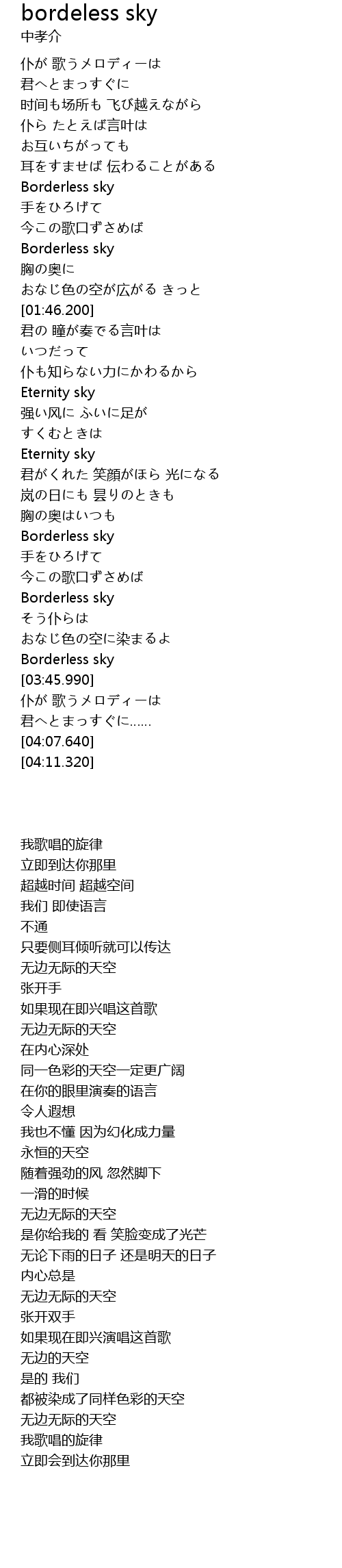 | [01:34.470] | おなじ色の空が広がる きっと |