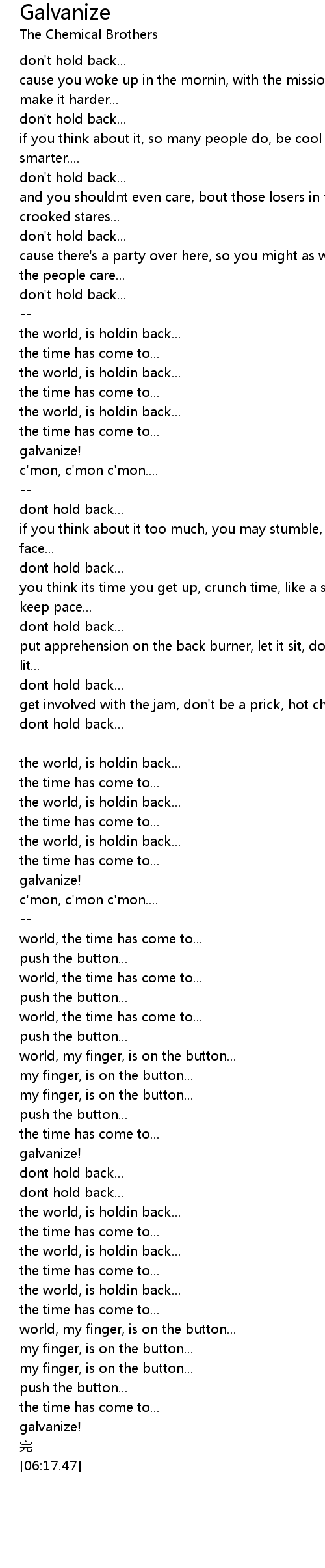 | [02:10.62] | c' mon, c' mon c' mon.... |