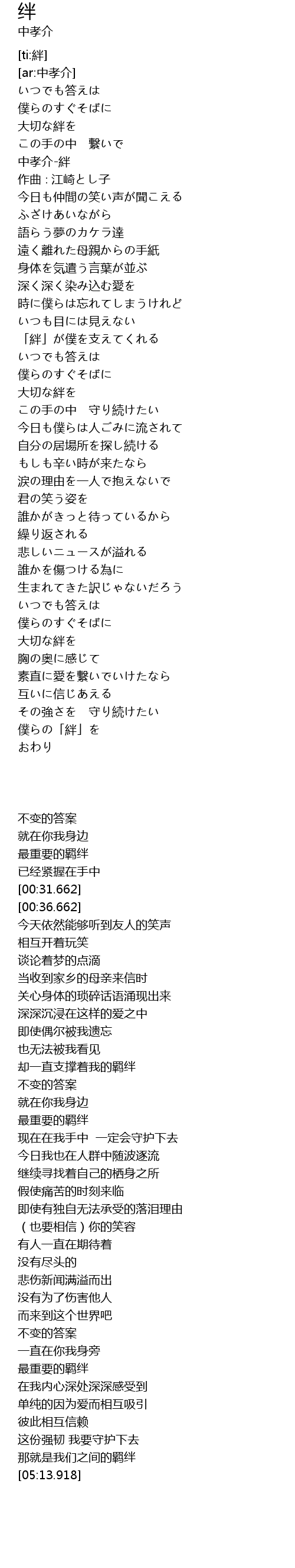 | [01:56.628] | 「絆」が僕を支えてくれる |
