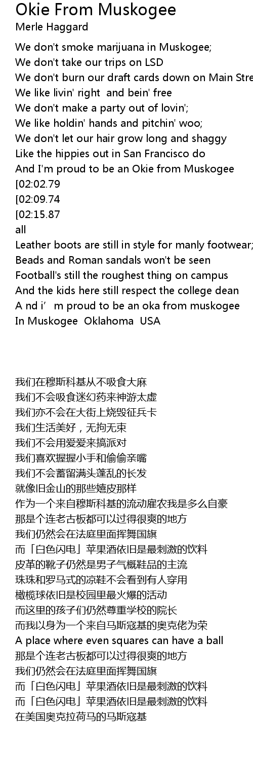 | [01:55.32] | A nd i' m proud to be an oka from muskogee |