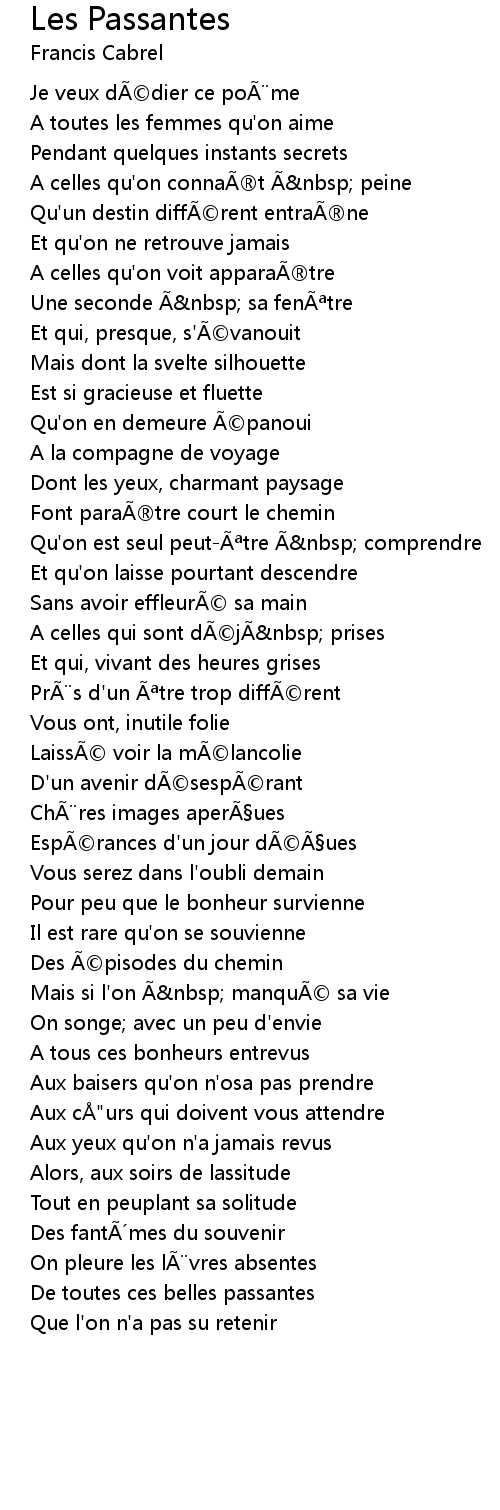 | Song | Les Passantes |