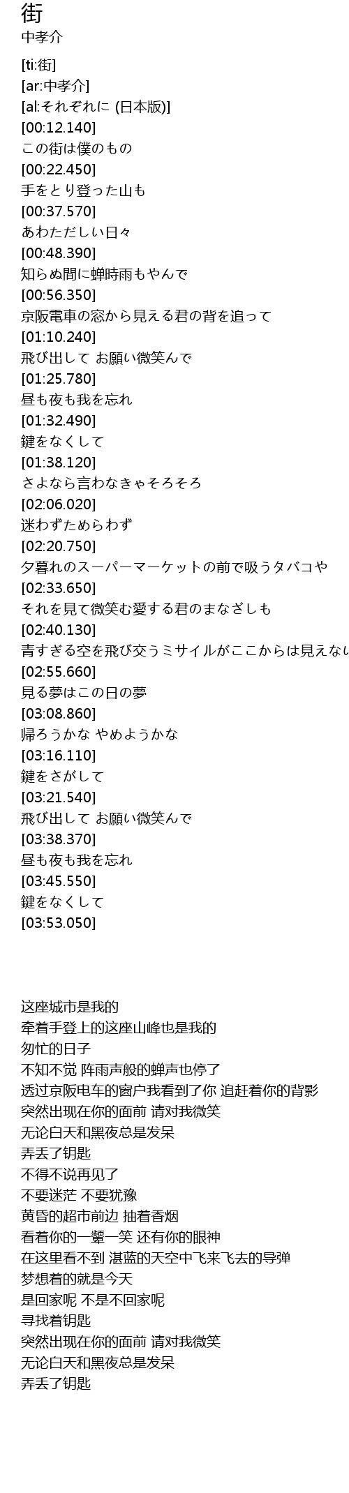 | [00:59.240] | 京阪電車の窓から見える君の背を追って |