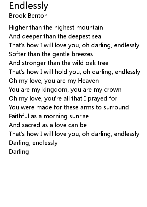 That's how I will love you, oh darling, endlessly |