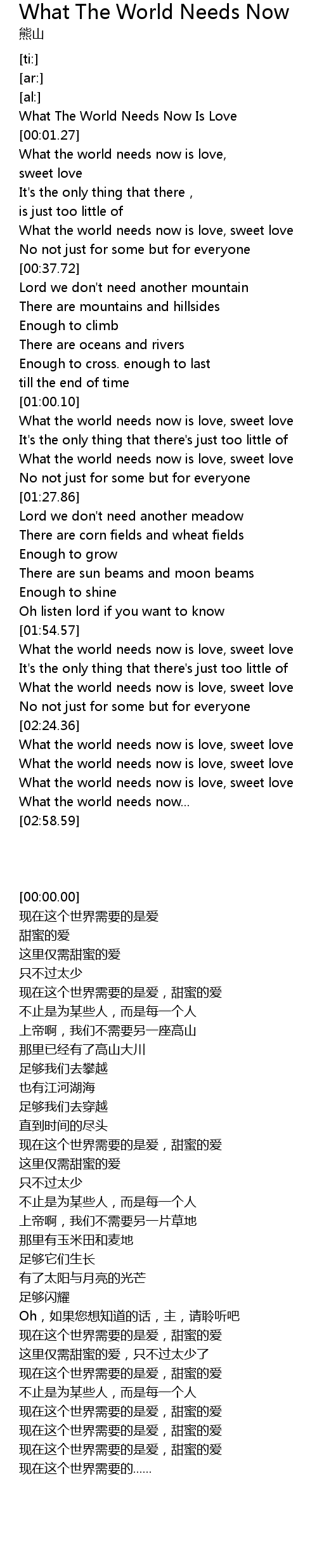 | [00:00.00] | What The World Needs Now Is Love |
