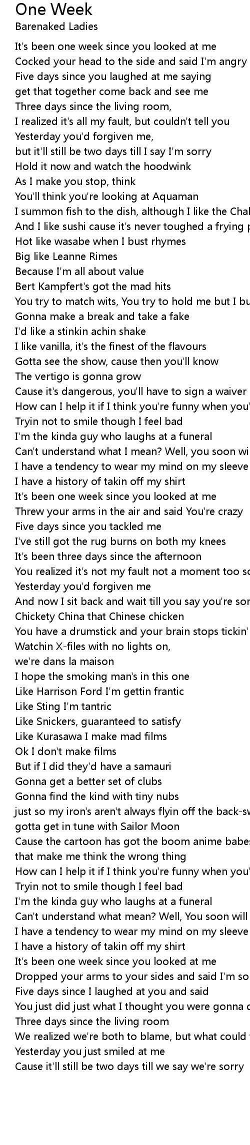 Five days since you laughed at me saying |