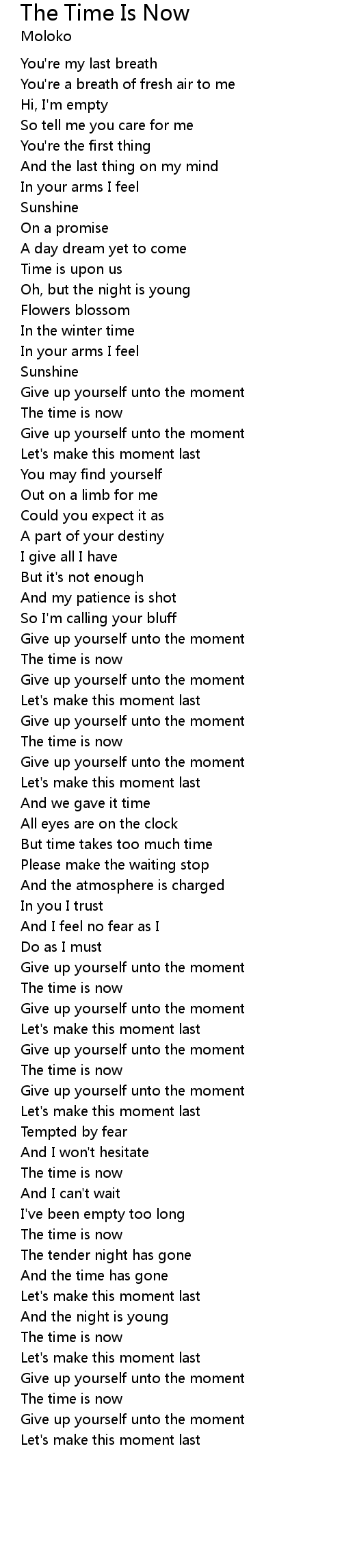 The Time Is Now Lyrics