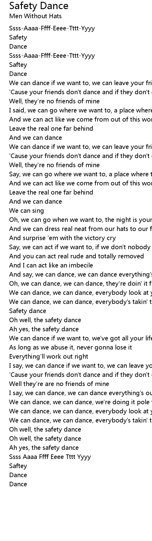 Oh well, the safety dance |