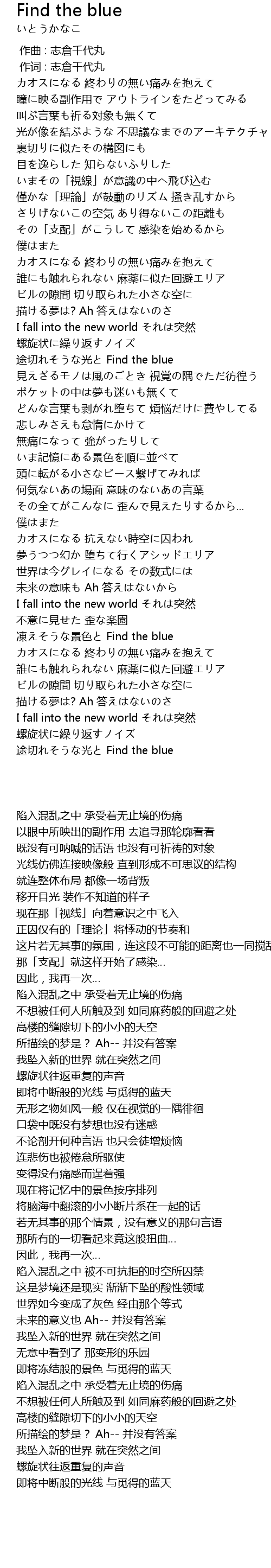 | [03:43.65] | 凍えそうな景色と Find the blue |
