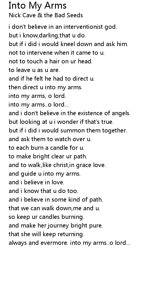 into my arms, o lord. |