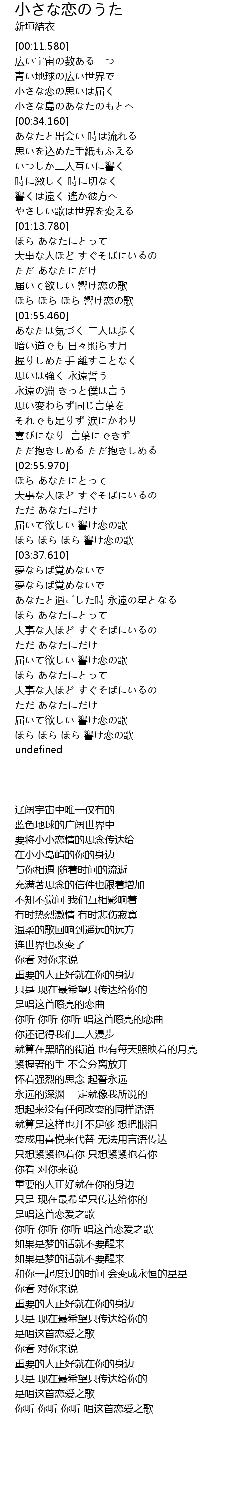 | [03:11.410] | 届いて欲しい 響け恋の歌 |