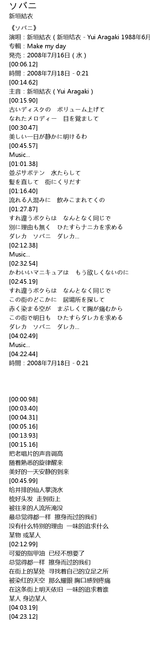 | [00:03.40] | yan bei: xin yuan jie yi xin yuan jie yi Yui Aragaki 1988 nian 6 yue 11 ri |