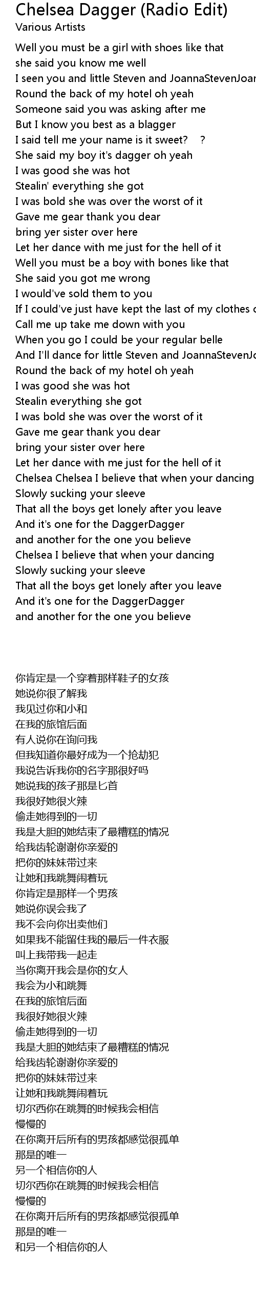 | [00:58.600] | She said my boy it's dagger oh yeah |