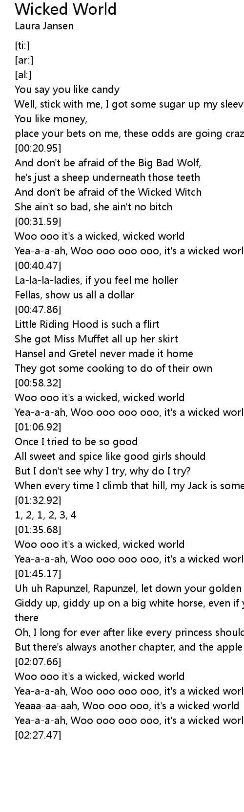 Yea-a-a-ah, Woo ooo ooo ooo, it's a wicked world ... |