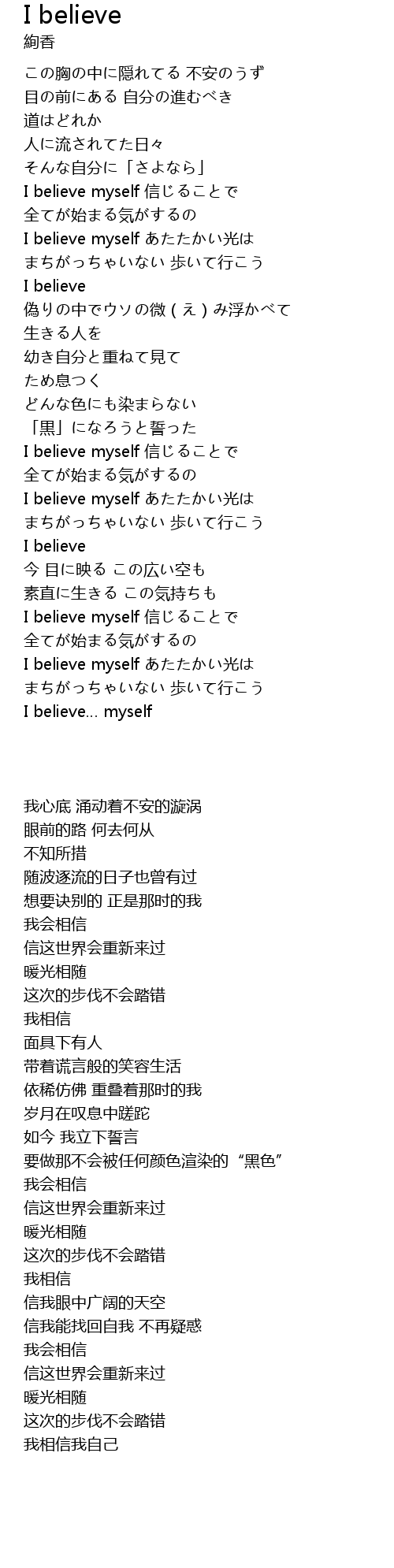 I believe myself 信じることで |