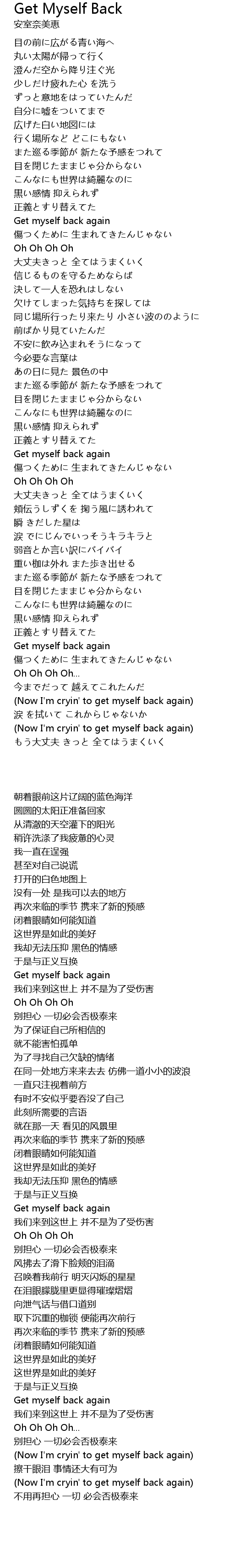 | [04:11.010] | (Now I'm cryin' to get myself back again) |