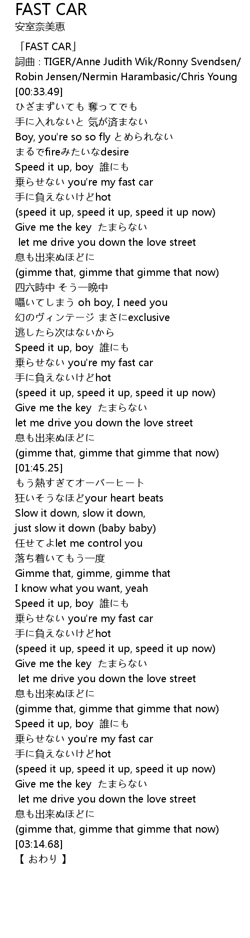 | [03:01.97] | (speed it up, speed it up, speed it up now) |