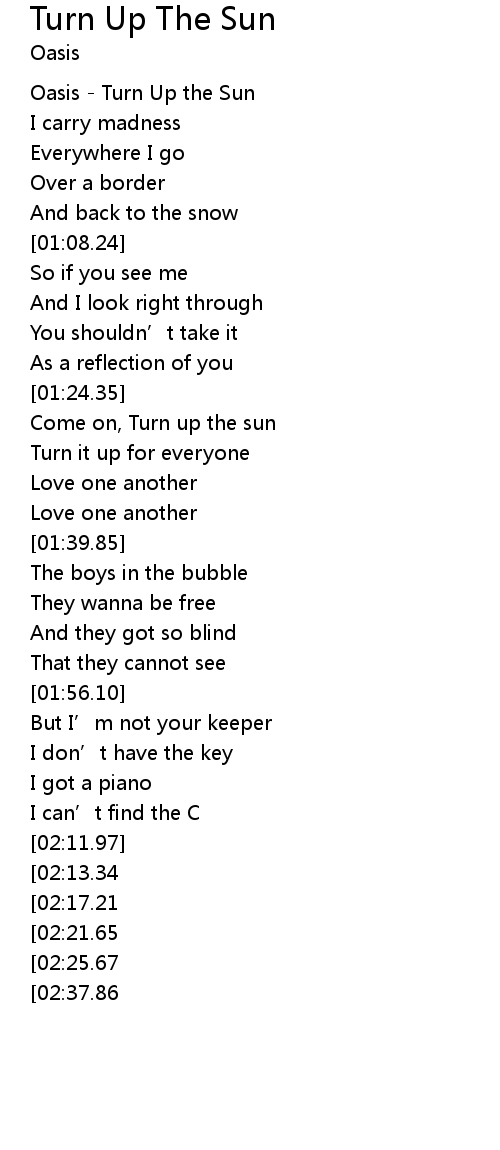 | [00:00.00] | Oasis - Turn Up the Sun |