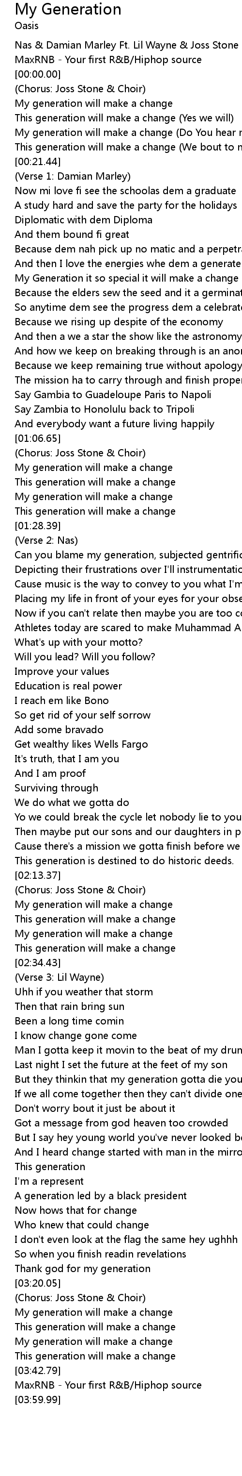 Nas & Damian Marley Ft. Lil Wayne & Joss Stone - My Generation |