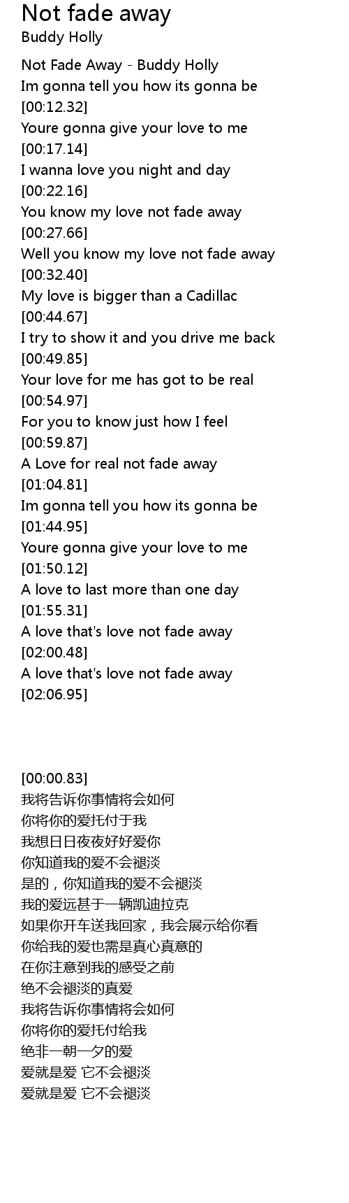Well you know my love not fade away |