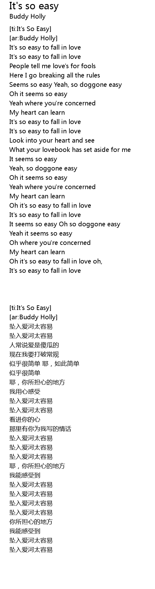 Oh it's so easy to fall in love oh, |