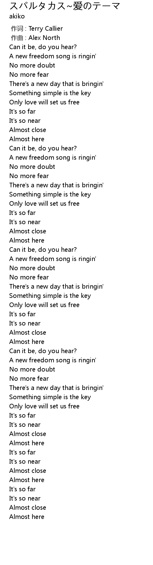 | Song | スパルタカス~爱のテーマ |