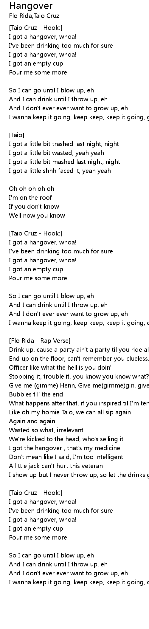 | I got a hangover, whoa! | |