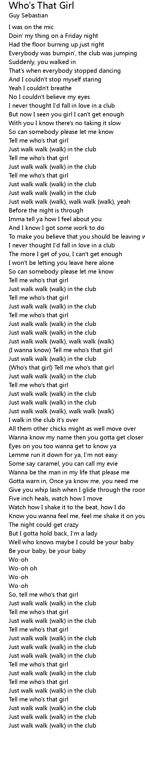 (I wanna know) Tell me who's that girl |