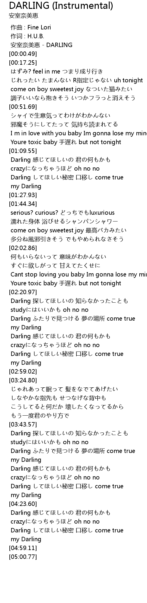 | [00:00.00] | 安室奈美恵 - DARLING |