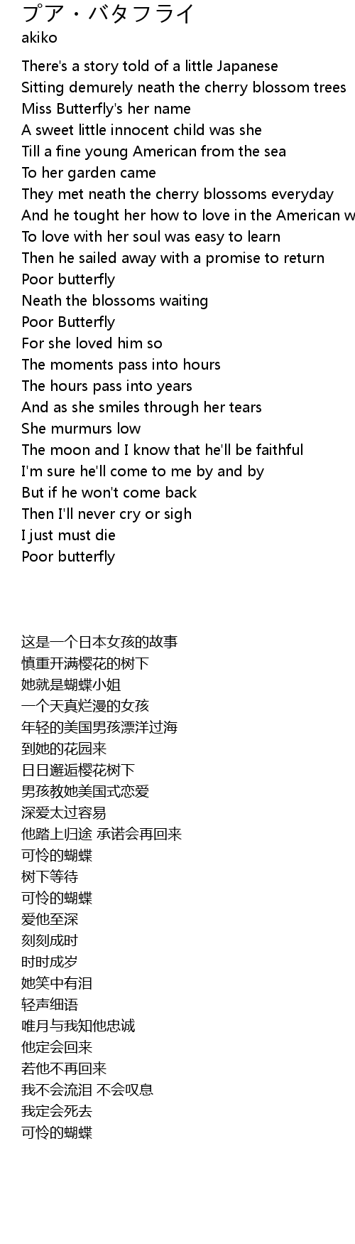 | [01:03.226] | They met neath the cherry blossoms everyday |